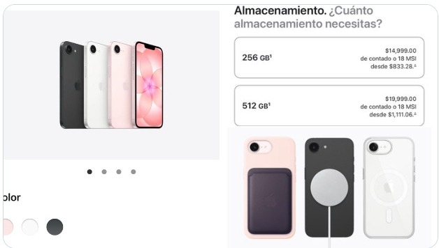 Los precios para México serán los siguientes: iPhone 17e, con capacidad de 256 GB: 14,999 pesos, y el iPhone 17e, de 512 GB: 19,999 pesos.