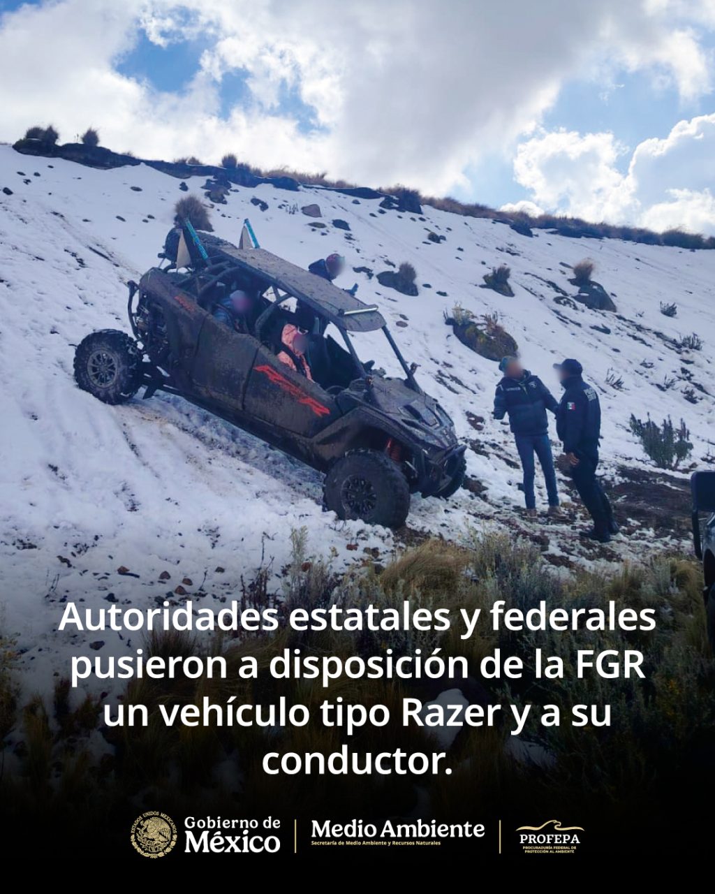 El conductor de un vehículo tipo Razer fue detenido luego de haber ingresado sin autorización a la zona núcleo del Área de Protección de Flora y Fauna del Nevado de Toluca, por lo que ahora enfrentará cargos por delito ambiental.