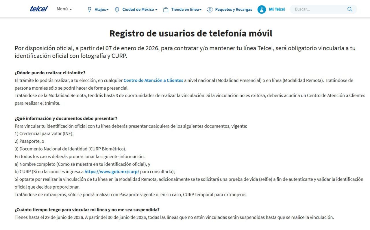 Esta medida forma parte de los nuevos lineamientos de la Comisión Reguladora de Telecomunicaciones (CRT) y aplica para todas las líneas activas en México
