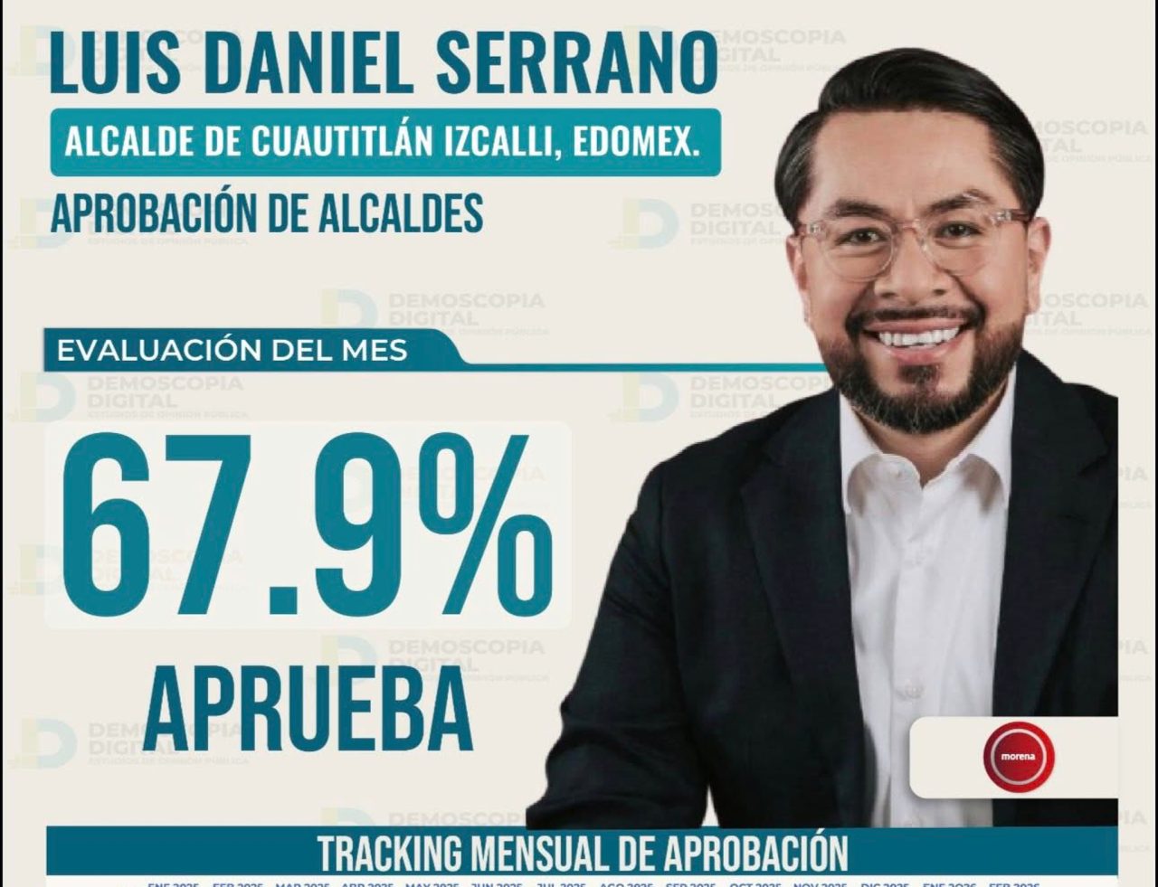 Por otra parte, la encuestadora GobernArte refiere que Serrano Palacios ocupa el cuarto lugar general entre los presidentes municipales del Edoméx y se ubica dentro del Top 3 de alcaldes emanados de Morena, con una aprobación de 54.7 por ciento, en donde además ha ido escalando escaños a favor.