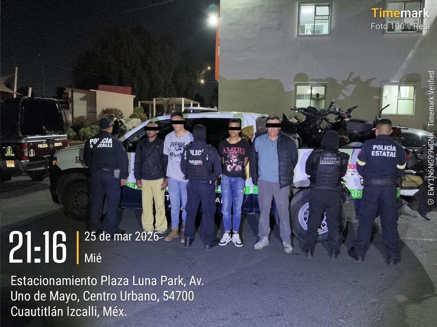 Policías municipales de Cuautitlán Izcalli detuvieron a cuatro sujetos quienes estarían relacionados con una banda de robo de motocicletas en la demarcación.