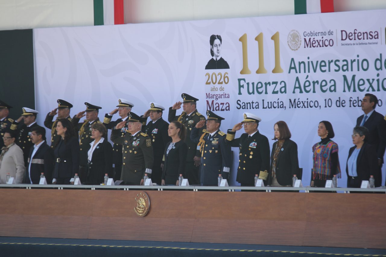 Este martes la presidenta Claudia Sheinbaum Pardo encabezó la ceremonia por el 111 Aniversario de la Fuerza Aérea Mexicana, en la base aérea de Santa Lucía.
